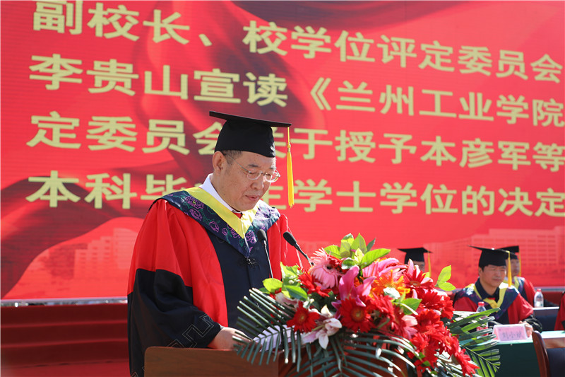 副校长李贵山宣读《兰州工业学院学位评定委员会关于授予本彦军等1867名本科毕业生学士学位的决定》