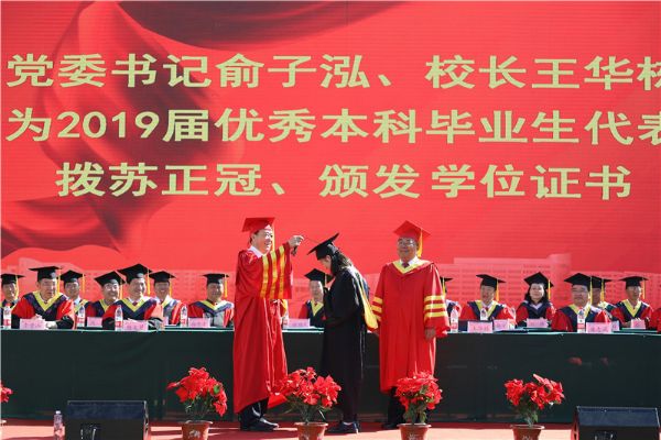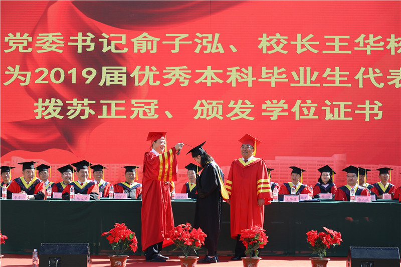 校长王华栋为优秀本科毕业生正冠拨苏