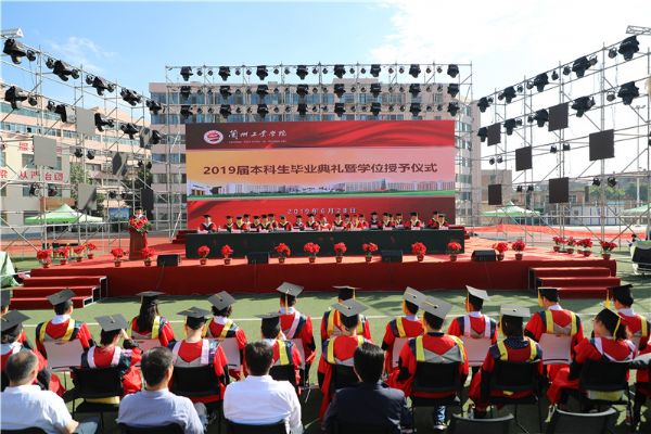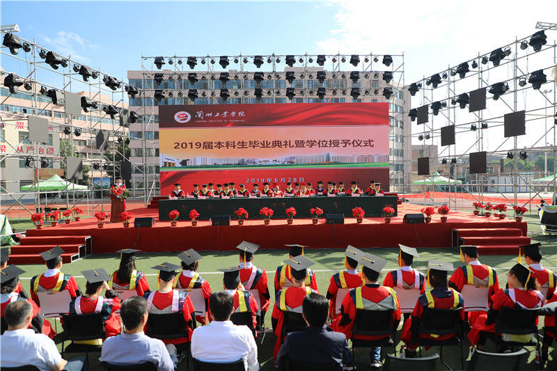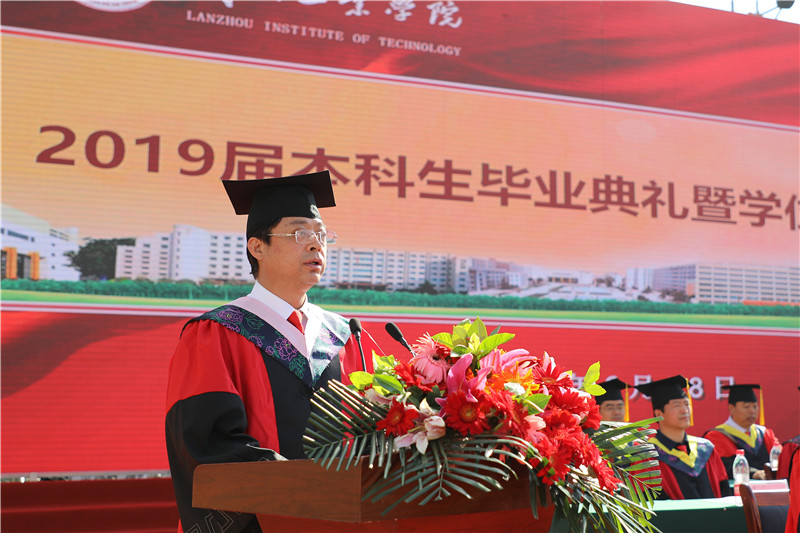 上午9时,随着雄壮激昂的国歌响起,毕业典礼开始。廉志端宣读《兰州工业学院关于表彰2019届优秀毕业生的决定》。李贵山宣读《兰州工业学院学位评定委员会关于授予本彦军等1867名本科毕业生学士学位的决定》。