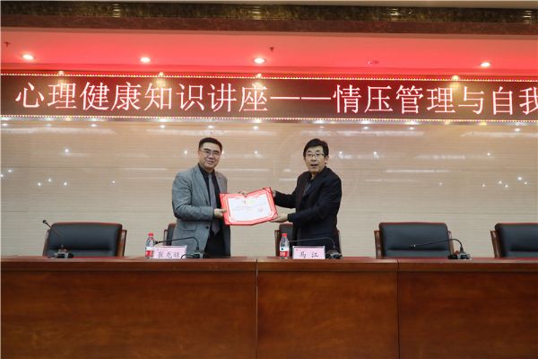 4月18日,学校在第三学术报告厅举办 “情压管理与自我和谐”心理健康教育专题讲座。有着丰富实践经验的中国心理卫生协会会员、国家卫计委人才中心特邀专家崔龙旺教授应邀担任主讲。副校长马江,机关各部门干部、各学院辅导员、班主任代表及学生干部200余人听取了讲座。 讲座前,马江为崔龙旺教授颁发了“辅导员成长导师”的聘书。 讲座中,崔龙旺结合自己从事心理健康教育与心理咨询20余年的经验和体会,联系实际,深入解读了“心理危机的影响因素”和“心理危机的后果”,并结合大量案例,讲述了情绪、压力及如何正确管理负面情绪和压力。讲授深入浅出,诙谐幽默,充满哲理,受到听众欢迎。
