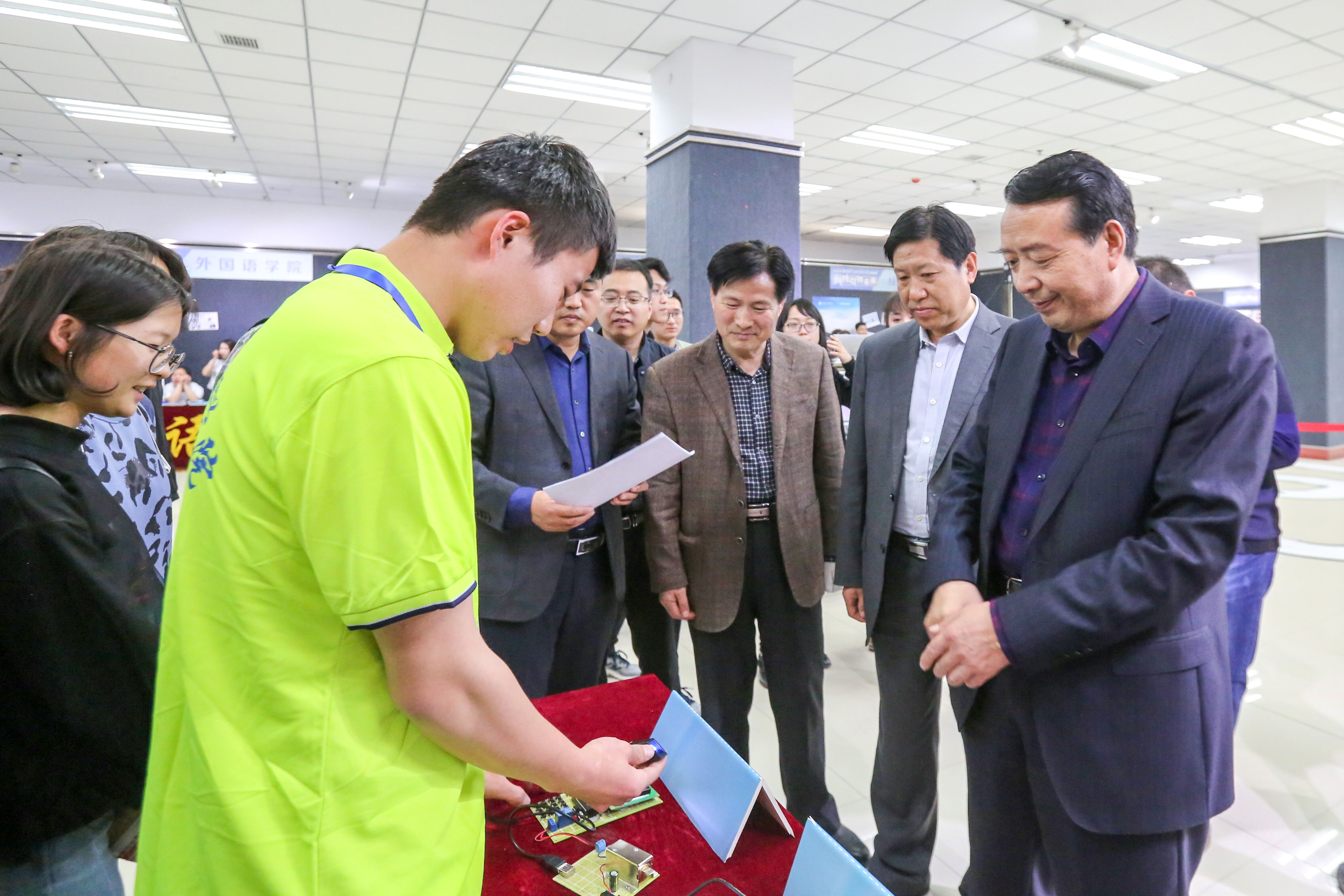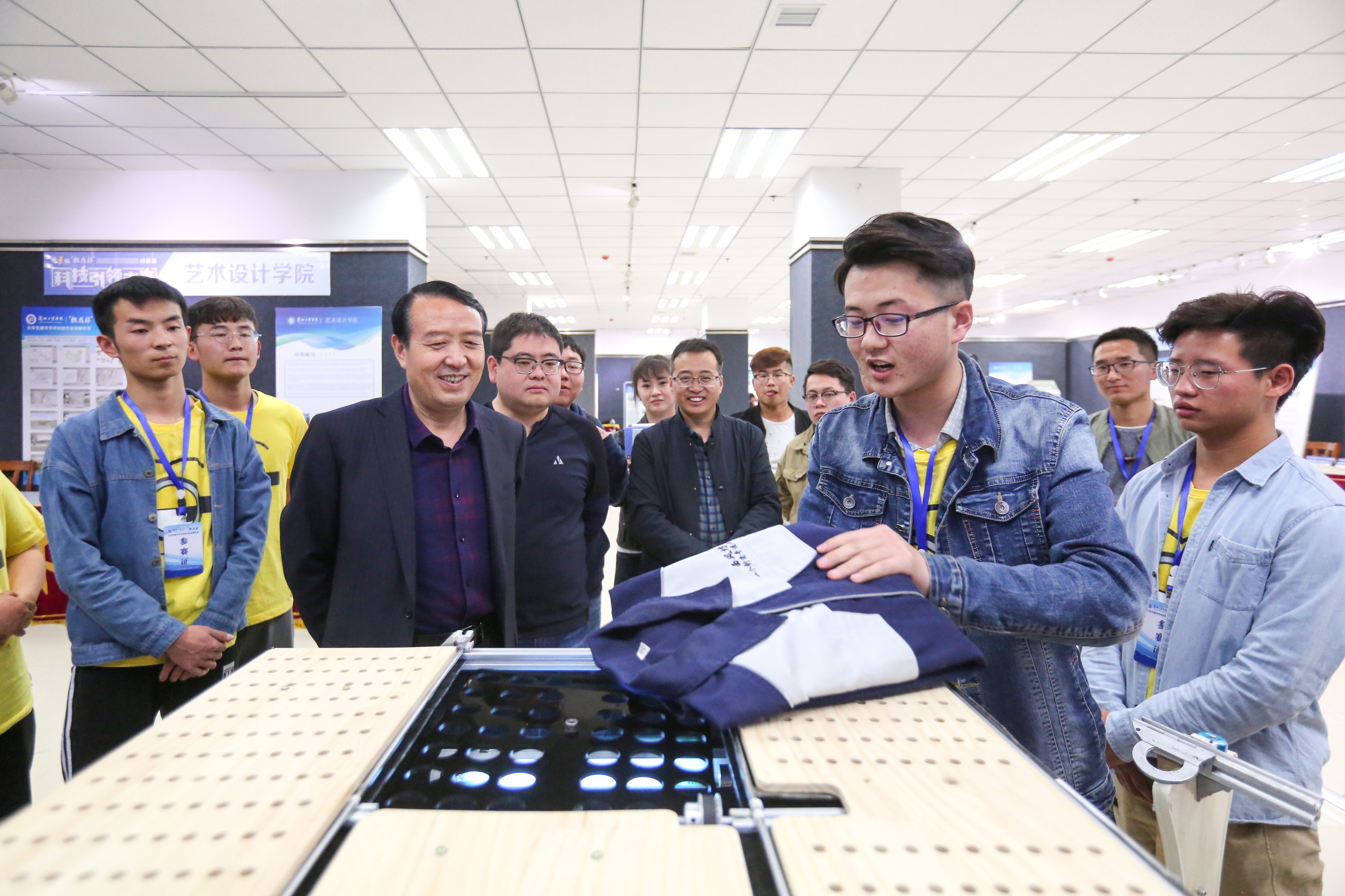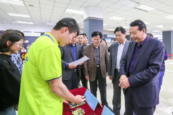 4月16日下午,校长王华栋,副校长陈文贤、马铁信等参观指导学校第十届“挑战杯”大学生课外学术科技作品竞赛终审展示暨2018年大学生科技创新项目成果展。教务处处长、创新创业学院院长马宏锋,团委书记王斌,创新创业学院副院长孙永吉,团委副书记白丽丽以及各二级学院团委书记一同观看。