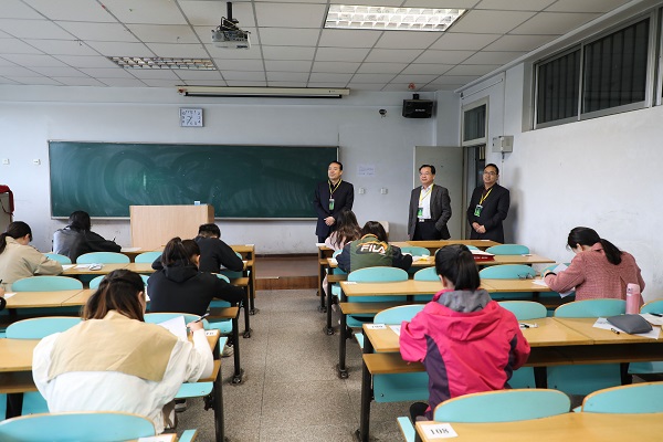 2019年4月13日,学校2019年度人事代理人才招聘考试笔试在第一教学楼进行。校长王华栋、纪委书记廉志端到现场检查巡视考试工作。本次笔试共有146名考生到场参加考试。