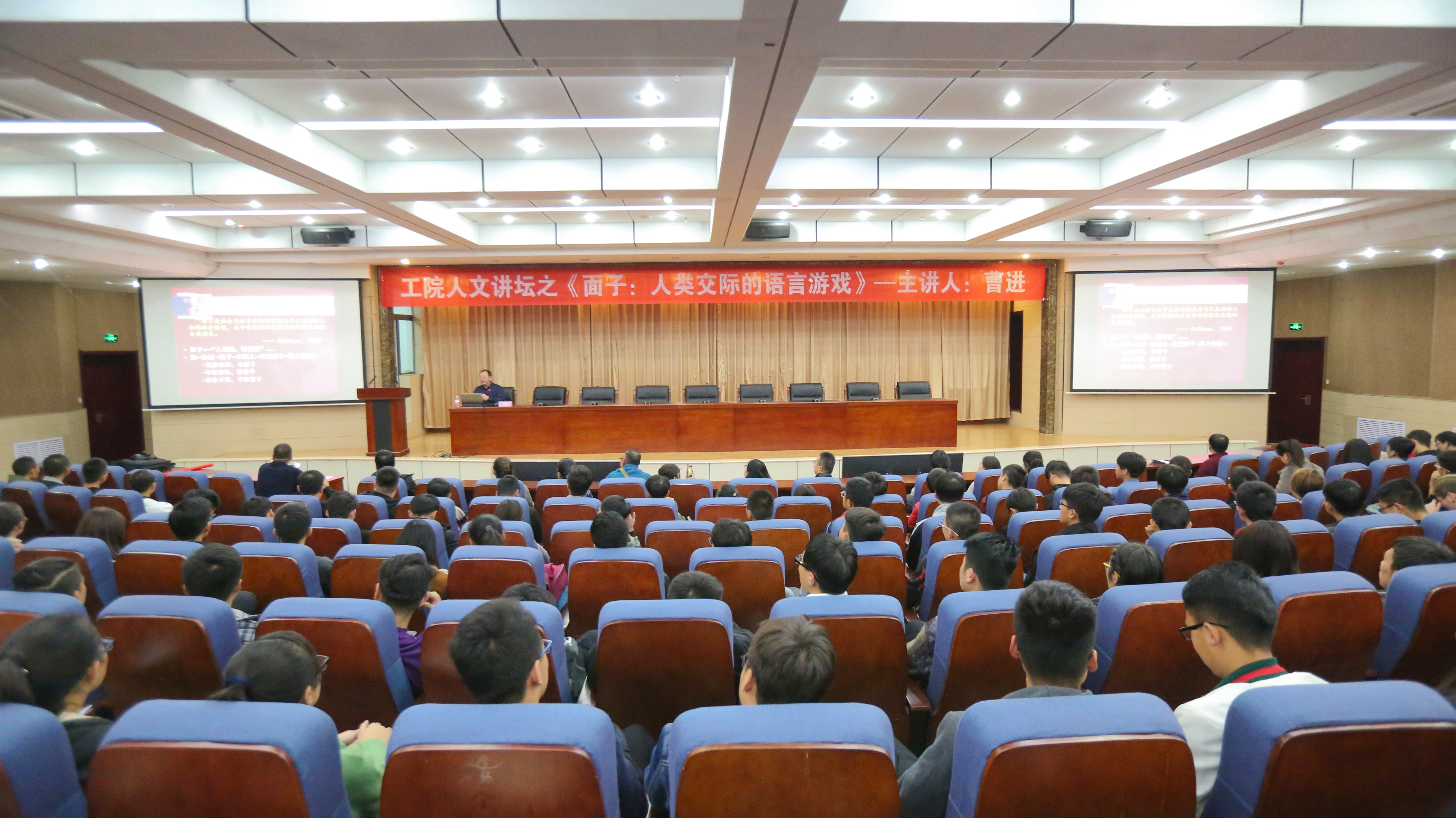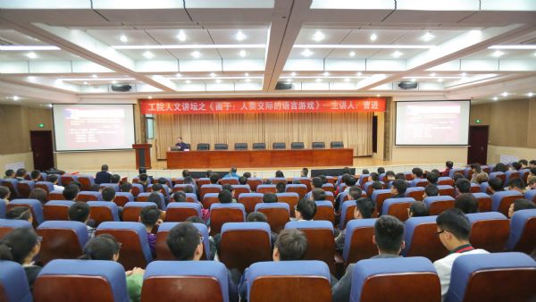 11月8日下午,工院人文讲坛第十四讲在第三学术报告厅举行。西北师范大学外国语学院院长、教授、博士生导师曹进应邀来我校作题为《面子:人类交际的语言游戏》的讲座。学校300余师生听取了讲座。 曹进系甘肃省教学名师、国家级特色专业英语专业负责人,外国语言文学省级重点学科带头人,省级翻译特色专业负责人,讲座中,他围绕“面子”这一主题,通过生动案例,从学术角度进行了深入解读,阐述了“面子”的基本定义和历史,从数量、质量、关联、方式等方面阐述了语言学研究的社会意义,并详尽回答了听众提出的问题。讲座视角独特新颖,开阔了师生视野。 近年来,校团委精心搭建工科学生人文素质教育平台,经常性举办人文讲坛,营造校园人文氛围,受到广大师生欢迎。