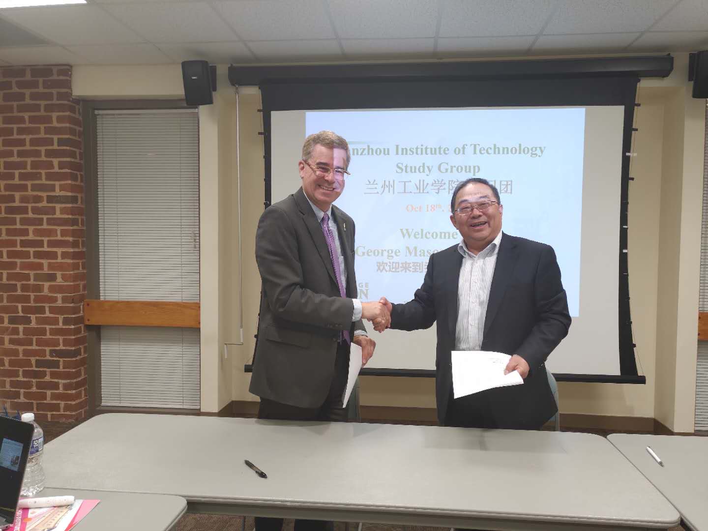 在美国乔治梅森大学访问期间,俞子泓一行在该校沙尔政策与政府学院会议室与沙尔政策与政府学院院长Mark J.Rozell举行会谈,双方就学生“3+1+1”硕士研究生培养项目、“2+1+1”双学士学位项目、教师访学、短期研修、文化学术交流、校际联络与高层互访等方面合作达成共识,签署了《兰州工业学院与美国乔治梅森大学合作备忘录》,随后参观了该校大学生服务中心。