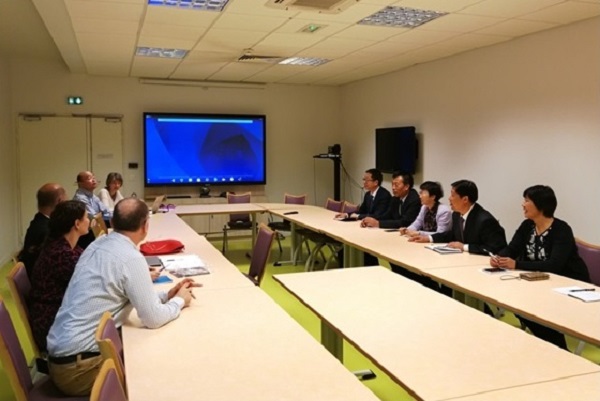 在法国国立高等工业与企业计算机学校,与学校校长Kaymel、国际处处长Ferruslow、科技成果孵化转化中心C19负责人Nassim Khider 会面,校长Kaymel就学校性质、办学历史和办学情况、开设专业和课程设置、教学管理以及人才培养模式、学生入学要求和学习以及就业等情况进行了详细介绍。国际处处长Ferruslow就法国高等教育概况、高等教育体系、国际交流模式以及对交换互访学生的语言、学制、文凭互认和取得等情况进行了说明。Nassim Khider就科技成果孵化转化中心C19性质、经费来源、成果孵化转化方式、国际合作形式等进行了介绍。马铁信介绍了我校办学性质、办学历史、学科设置、人才培养模式、教学科研、国际交流与合作等情况,双方就建立校际合作,教师进修,学生访学等方面进行了深入交流,达成了校际合作意向。会谈后在校长Kaymel的陪同下,我校访问团参观了科技成果孵化转化中心。