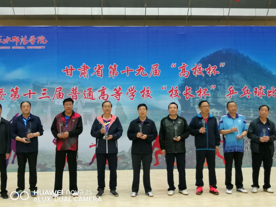 9月16日,由甘肃省教育厅主办、天水师范学院承办的甘肃省第十九届“高校杯”暨第十三届普通高等学校“校长杯”乒乓球比赛在天水师范学院落下帷幕。来自省内24所高校代表队的420余名运动员参加了比赛。经过三天紧张激烈的角逐,我校代表队在本次比赛中荣获佳绩。其中,教职工男女混合团体队获第五名,学生男子团体进入前八名,校长王华栋获 “校长组”单打第四名,教师刘冠男获优秀教练员称号。