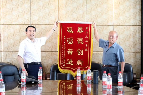 座谈会上,王华栋代表学校向各位校友的到来表示热烈欢迎!并向校友们详细介绍了学校历史沿革、办学规模、师资队伍、人才培养、科学研究、毕业生就业以及服务社会等方面取得的丰硕成果,同校友们一起感受母校的发展成就。七八届机械制造304班校友老班长代表全班同学发言,校友争相发言,讲述了自己毕业后的心路历程,感慨母校的发展变化;从兰州工业学校到兰州工业学院,一字之差、40年巨变,旧貌换新颜,取得了巨大的发展进步。老校友们对母校40年来的发展感到非常欣慰,纷纷表示要继续关注,关心支持学校的发展,并以班级名义向学校赠送了一面锦旗和写有全班学生姓名的"基业千秋"的字画。学校向校友赠送了校徽。