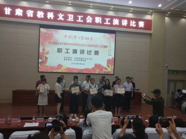 6月5日,甘肃省教科文卫工会在兰州文理学院举办省教科文卫系统“中国梦.劳动美——学习贯彻习近平新时代中国特色社会主义思想和党的十九大精神”职工演讲比赛。省教科文卫系统30余家单位的56名选手参加了比赛。经过一天紧张激烈的角逐,我校选送的张瑶、王艳霞两名选手荣获三等奖。 此次比赛,选手们分别结合自己的职业经历与感悟,用饱满的热情、生动的语言、真实的情感、鲜活的事例,声情并茂地诠释了“中国梦.劳动美”的深刻内涵,反映出教科文卫系统职工勇于奉献的责任担当和爱岗敬业的良好精神风貌。