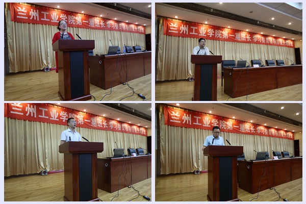 本次培训,副校长李贵山教授、马克思主义学院副院长张小东教授、保卫处处长张鹏飞副教授、软件工程学院副院长辛欢副教授、心理健康咨询中心宋秀芝副教授分别作了《班干部在班级建设中的地位和作用》、《国学中的智慧与领导力》、《校园安全警钟长鸣》、《大学班级管理实务》、《大学生心理调适》等讲座,机电工程学院机设15-1班班长魏旭红、软件工程学院网络14班王斌、经济管理学院财管14-1班张栩斌,分别围绕班级管理、学风建设、考研经验、英语四六级经验作了交流发言。