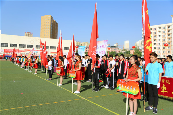 上午8时许,在明快激昂的《运动员进行曲》旋律中,国旗方阵、红旗队、会徽、花束队、裁判员队及16支代表队精神饱满,迈着整齐有力的步伐列队入场。整齐的动作、矫健的身姿、响彻云霄的口号,充分展示了工院人积极进取、奋发向上的精神风貌。