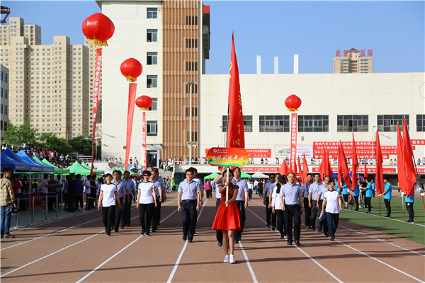五月的校园,繁花似锦,草木葱茏。南校区运动场上,彩旗飘飘,列队待发。17日上午,学校2018年运动会开幕式在这里隆重举行。党委书记俞子泓,校长王华栋,副校长魏军,纪委书记廉志端,副校长马江、马铁信、李贵山、郑小平,总会计师王多兴,校长助理雷在福出席开幕式并在主席台就坐。魏军主持开幕式,万余师生参加开幕式。