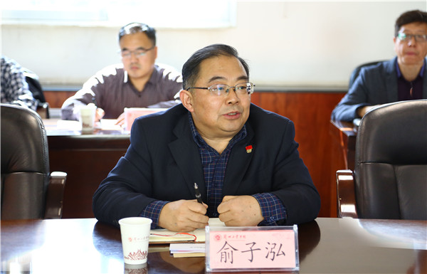 3月23日下午,兰州新区职教园区管委会副主任朱廷珺,规划财务处处长张明朗,教学实训管理处处长邬再新、副处长张廷刚一行来我校调研。党委书记俞子泓主持召开调研会。校长王华栋,副校长魏军、马铁信、李贵山,校长助理雷在福出席会议,教务处、基建处等相关部门负责人参加会议。