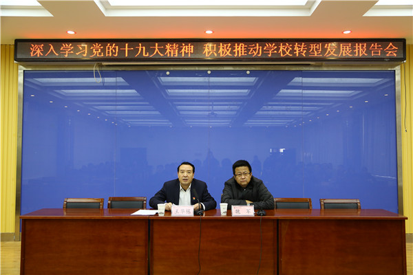 2018年1月10日下午,校长王华栋在第一学术报告厅作十九大精神专题辅导报告。全体校领导出席报告会,副校长魏军主持报告会,全体中层干部听取了报告。