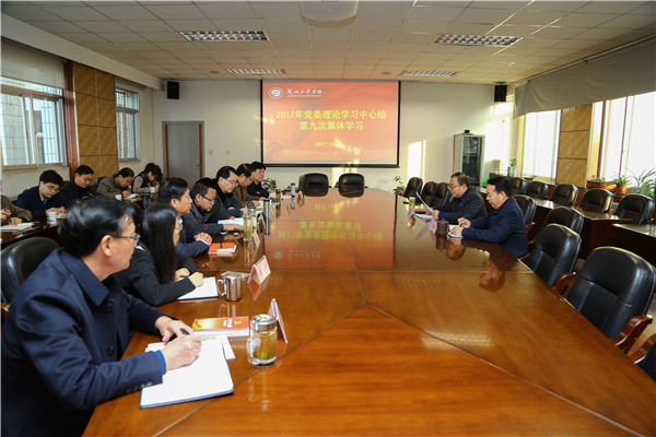 2017年12月19日上午,学校党委理论学习中心组在第二会议室举行第9次集体学习。全体校领导及党委部门负责人参加了学习。党委书记俞子泓主持学习。
