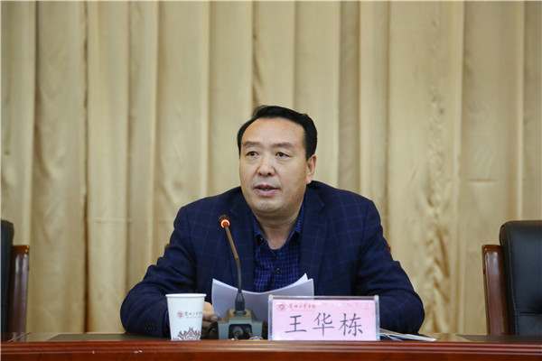王华栋就进一步做好学习宣传贯彻党的十九大精神提出了四点要求:一要充分认识党的十九大开创性、里程碑和划时代的重大意义,准确领会把握党的十九大精神的思想精髓和核心要义。在今后的工作中,我们要用“新”的思想、“新”的理念、“新”的精神面貌,不断开创我校发展的新局面。二要扎实推动党的十九大精神学习研究宣传全覆盖,切实做好习近平新时代中国特色社会主义思想“五进”工作。三要认真落实校党委《关于学习宣传贯彻党的十九大精神的通知》和《关于开展学习宣传贯彻党的十九大精神宣讲工作的通知》要求,各党总支、直属党支部、各部门要精心组织实施,领导干部要带头学习、带头宣讲,确保活动扎实有效开展。四要联系学校实际,增强学习宣传贯彻党的十九大精神的实效性和针对性。对照十九大的新战略新部署新要求,坚持把学习贯彻党的十九大精神与推进学校重点工作结合起来,坚持立德树人为根本,全面深化“四项改革”,加快推进兰州新区新校区建设,着力推动学校转型发展,确保学校各项工作有序健康发展。