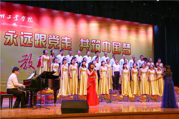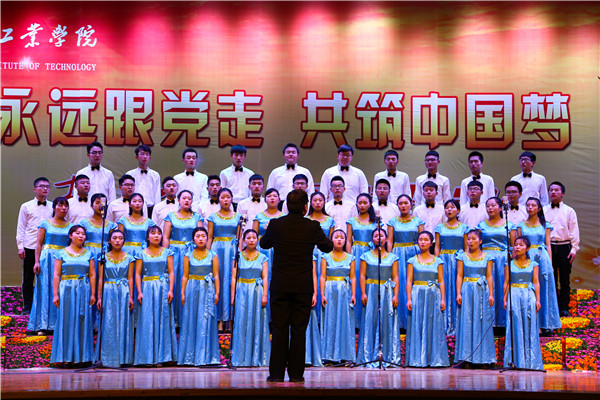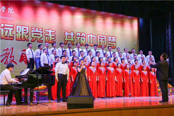 比赛在机关党总支《走向复兴》《旗帜颂》的大合唱中拉开帷幕。15支代表队依次演唱了《唱支山歌给党听》《没有共产党就没有新中国》《保卫黄河》《祖国不会忘记》《四渡赤水出奇兵》《共圆中国梦》《母亲是中华》等一曲曲熟悉的旋律。热情讴歌了伟大的党、伟大的祖国和伟大的时代。演出高潮迭起,精彩纷呈,唱出了广大教职工对党的热爱,对祖国的热爱,对工业学院的热爱。一首首经典革命歌曲和弘扬时代正能量的旋律,或高昂雄浑、或激越澎湃,展示了广大教职工不忘初心、牢记使命,昂首奋进新时代、同心共筑中国梦,为实现中华民族伟大复兴而奋斗的豪情。体现了工院人团结奋进、砥砺前行、加快兰州新区新校区建设,着力推动学校转型发展的坚定信心。
