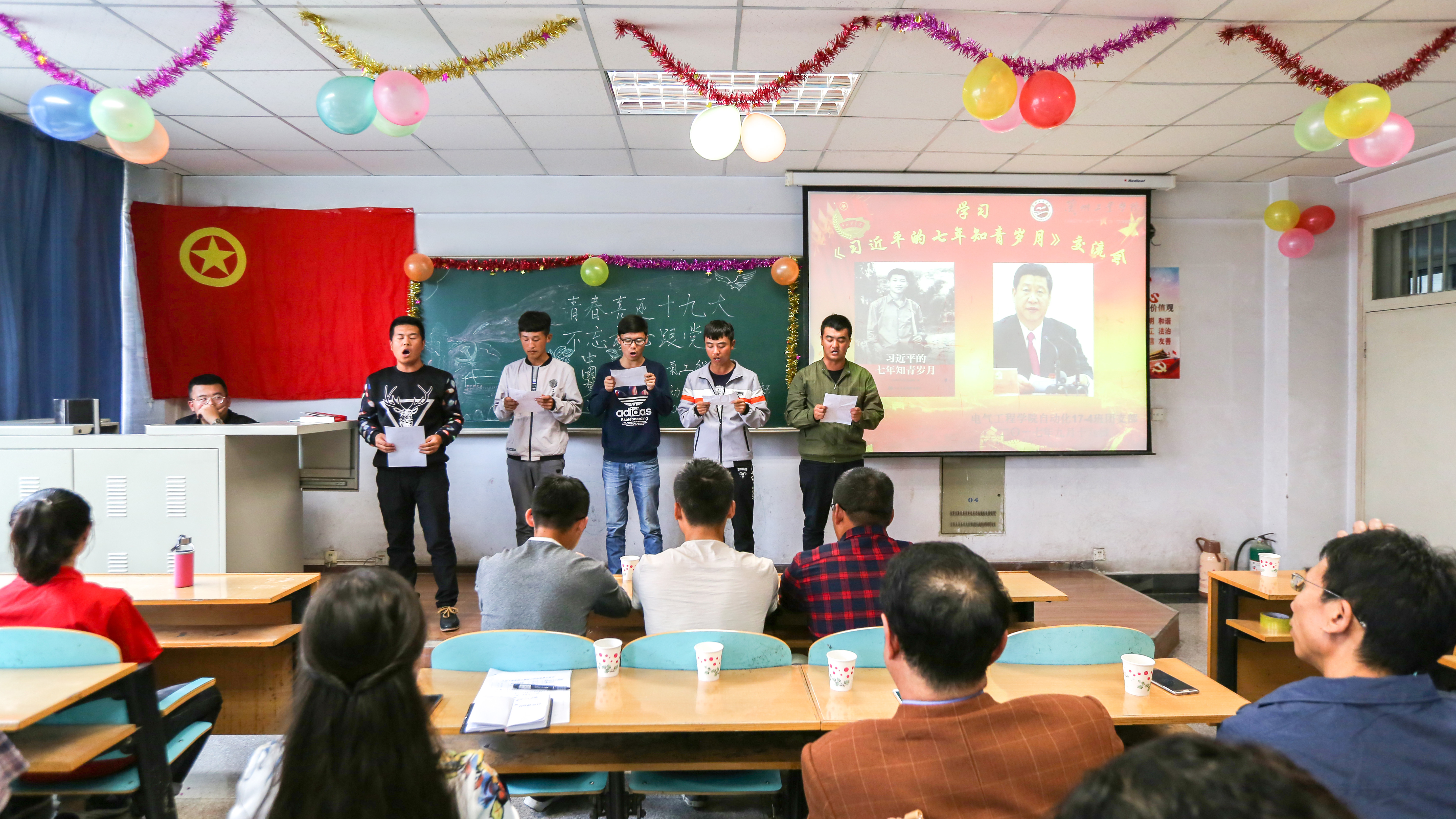 活动中,同学们通过朗读《习近平的七年知青岁月》部分原文进行了集体学习,并积极发言。团支书屈立成同学说,这本采访实录中总书记当年“苦其心志、劳其筋骨、饿其体肤、空乏其身”的历练故事,习近平总书记知青时期艰苦生活和成长历程深深打动了我们,虽然现在我们生活中的“苦、劳、饿、空”都少了点,但作为大一新生,我们一定要将努力学习摆在首位,才不负青春。高士成同学说,他来自甘肃农村,虽然对农村的生活比较了解,深知父辈、祖辈曾经生活的艰苦,现在条件好了,但父母常教育我们一定要懂得感恩。完军辉等5名同学集体朗诵了诗歌《腾飞吧,我的祖国》,全体师生集体观看了主题视频。