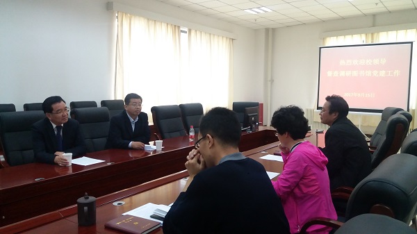 9月15日上午,纪委书记廉志端在组织部部长焦爱胜陪同下到图书馆调研党建工作。图书馆党支部书记张秀红从思想政治建设、党建工作、“两学一做”学习教育、工会活动、特色活动等方面作了汇报。 廉志端在详细了解图书馆党政联席会议决策制度规范落实情况、“两学一做”学习教育常态化制度化情况、党组织作用发挥及建设情况后,对图书馆党建工作给予充分肯定,并提出了要求。廉志端强调,图书馆是面向全校开展教学和科研服务的业务部门,不能离开业务搞党建,要找准切入点,立足于工作实际、工作效果开展党建工作。班子成员要齐心协力,扎实工作,抓好阵地建设,切实让党的建设发挥应有作用。