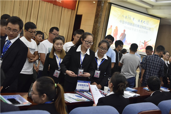 座谈会后,中铁隧道局在第三学术报告厅召开2018届毕业生校园招聘会。我校500余名学生参加了招聘会。经过初试、复试等环节,我校10余名毕业生与中铁隧道集团有限公司签订了就业协议。