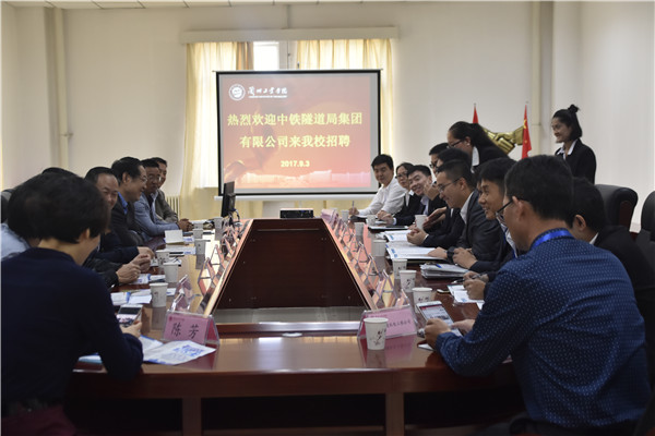 9月3日上午,中铁隧道局集团有限公司人力资源部张永康率集团下属10多家单位到我校考察交流并选聘2018届毕业生。副校长李贵山出席座谈会。相关学院党总支书记及招就处负责人参加座谈会。