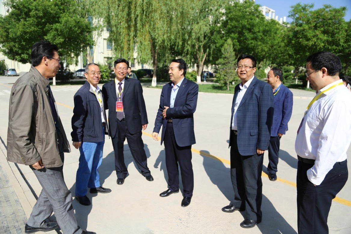 校长王华栋、副校长魏军与参会代表亲切交谈