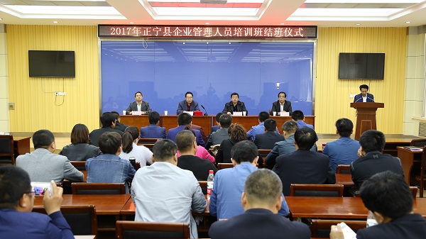 焦爱胜为本次培训辛勤付出的学校各位领导、专家教授表示感谢,向“正宁县企业管理人员培训班”全体学员的顺利结业表示祝贺。他指出,此次培训班时间虽短,但学校高度重视,安排紧凑,组织有序,全体学员在学习期间能严于律己、遵守纪律,迅速进入到紧张的学习状态,在学习过程中,能紧密联系各自实际,对企业管理中的困难和问题进行了富有成效的思考和研究,增强了理论素养,深化了工作思考,提升了工作能力。焦爱胜希望全体学员将这次培训中所学的知识和掌握的技能,应用到今后的工作中,为企业更好的服务,创造更多的效益,为推动正宁县工业经济转型升级发展做出新的更大的贡献。