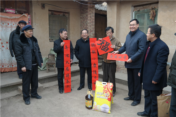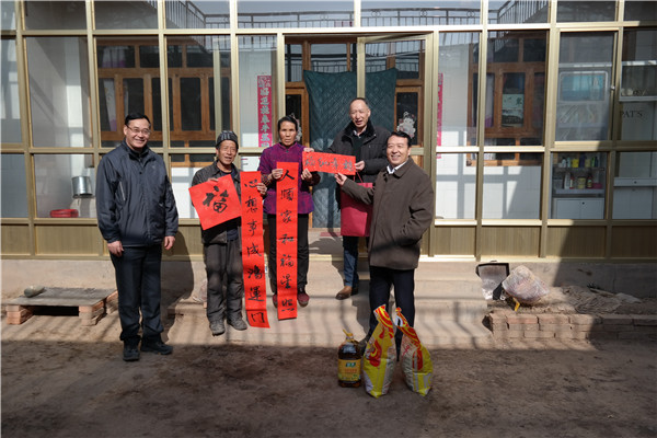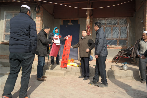 王华栋在长家寺村看望慰问残疾人李春武、郭玉秀,五保户长尕路,因大病返贫的侯国云等15户困难群众,将大米、清油和春联送到群众家中。在侯国云家,王华栋详细询问他的病情和有无其他困难需要解决,希望他好好养病,早日战胜病魔;在李春武、郭玉秀家中,王华栋和他们亲切交谈,详细了解子女上学、疾病就医、住房等情况,鼓励他们战胜困难,相信在党和政府的帮助下,一定能够顺利脱贫;慰问人员看到长尕路家情况后,心情沉重,表示一定会持续关注他家的情况,尽力解决实际困难,并鼓励他坚定生活信心,只要心怀希望,日子就会越过越好。