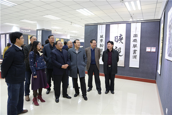 1月6日下午,学校“长征永远在路上”纪念红军长征胜利80周年暨第五届教职工书画摄影展在学校图书馆展厅开展。党委书记俞子泓,校长王华栋,副校长李贵山,党委委员、总会计师王多兴,校长助理雷在福,各学院党总支书记、机关相关部门负责人及艺术设计学院全体师生参加了开幕式。