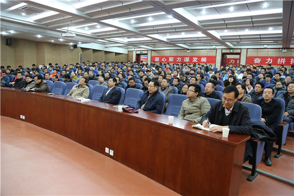 12月27日上午,省高校工委副书记贾宁来我校宣讲党的十八届六中全会精神。校长王华栋主持报告会。校领导冯彪、魏军、廉志端、马铁信、李贵山,总会计师王多兴,校长助理雷在福出席报告会,全体处科级干部及学生代表300余人听取了报告。