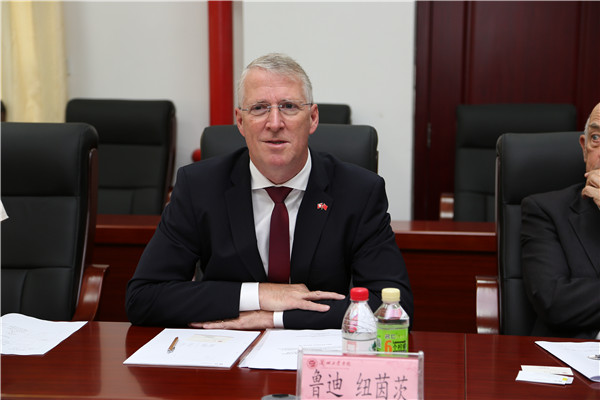 9月22日,瑞士西北应用科学与艺术大学经管学院院长鲁迪博士一行10人,在省委组织部副部长陈卫中等陪同下来我校访问。党委书记高永新,校长王华栋,党委副书记、副校长俞子泓,副校长魏军、马铁信,校长助理雷在福在图书馆二楼会议室接待了来访宾客。副校长冯彪主持座谈会。