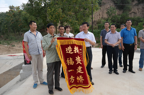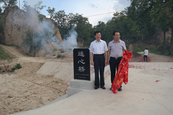 高永新说,2015年3月,省委决定我校在原来联系积石山县徐扈家村和长家寺村的基础上,增加秦安县云山乡潘河村为“双联”村,一年多时间里,我校开展了一些力所能及的工作,为云山乡培训小学校长、教导主任,为潘河村小学硬化校园,开展文化下乡,派干部驻村开展工作,等等。作为一所高校,我们发挥学校优势,开展智力帮扶,尽力解群众之所急。连心桥工程是我校今年双联暨精准扶贫十项重要工作之一。该桥建成,方便了大家出行,排除了安全隐患。下一步,我们将进一步贯彻落实省委双联工作暨精准扶贫要求,继续发挥学校智力帮扶这一优势,积极围绕云山乡产业发展,拓宽农民增收渠道,帮助农民尽快脱贫奔小康。