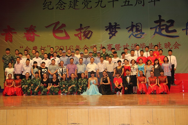 6月23日晚,机电工程学院在学校大礼堂举办纪念建党九十五周年“金鹰杯”之“青春飞扬 梦想启航”合唱比赛暨欢送毕业生晚会。副校长冯彪、李贵山,党委宣传部、学生处、校团委、公寓管理中心相关负责人及学院全体师生一同观看了演出。 晚会在微视频“青春不散场”和乐队激情演唱的《完美生活》、《向阳花》中拉开了序幕,学院2014级、2015级9个专业班级组成的合唱团历时一个月精心准备,作了汇报演出,安美玲、田超、古妮娜老师及毕业班学生代表同台演出,为学院2016届毕业生送去了祝福,赢得全场师生的热烈掌声,将晚会气氛一次次推向高潮。经过激烈角逐,机设14-3、4班获得本次合唱比赛冠军。现场观众除观看精彩节目外,还通过微博墙参与互动,在欣赏节目的同时,通过微博平台表达对毕业生的祝福。(供稿、摄影/机电工程学院)