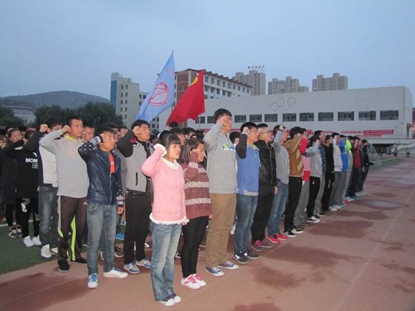从初秋到严冬,青年学子们都会准时在清晨六点半来到南校区运动场列队等待升旗仪式开始。铿锵有力的步伐、威武严整的队伍,端正肃穆的观众,鲜艳夺目的五星红旗成为兰工院晨曦中一道亮丽的风景线。(供稿、摄影/团委)
