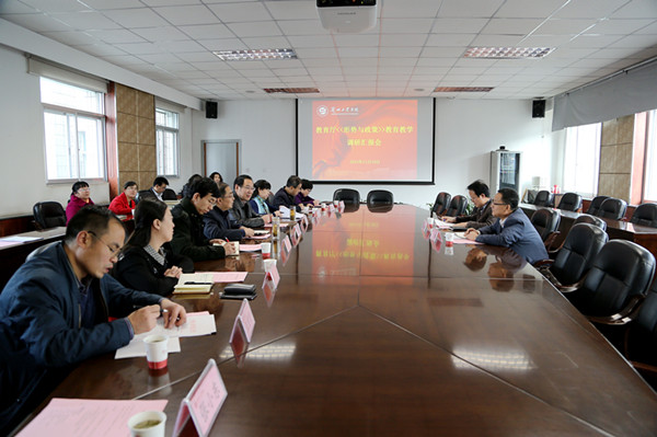 在听取汇报、查阅资料后,省教育厅思政处领导对我校形势与政策教育教学情况给予充分肯定,认为学校党委十分重视形势与政策教育教学工作,教学组织到位,工作措施得力,教学管理规范,并就进一步加强教学改革提出了意见和建议。(供稿、摄影/宣传部)