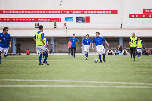 仪式结束后,俞子泓为教工足球队首场比赛开球。经过90分钟的激战,最终北校区联队和南校区联队以2:2握手言和。(供稿、摄影/工会、艺术设计学院)
