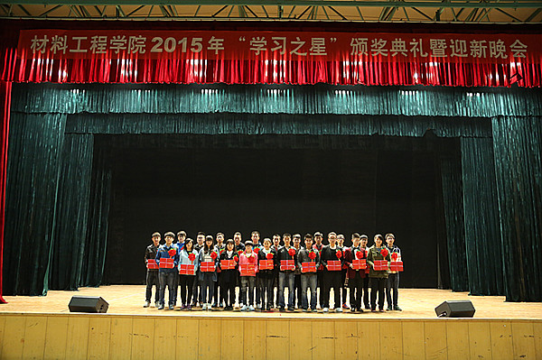 11月3日晚,北校区大礼堂华灯璀璨、歌声飞扬,校党委副书记、副校长俞子泓,副校长魏军、李贵山,学生处、教务处、招生就业处、团委等部门负责人,材料工程学院全体教职工与全院1063名学生欢聚一堂,观看了材料工程学院2015年“学习之星”颁奖典礼暨迎新晚会。