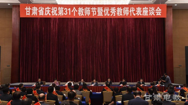 9月8日,在第31个教师节来临之际,省委、省政府在兰州召开庆祝教师节暨优秀教师代表座谈会,表彰任教30年以上的优秀乡村教师,为爱心基金会颁发“甘肃省乡村教师支持突出贡献奖”。省委书记、省人大常委会主任出席会议并作了重要讲话。省领导刘伟平、欧阳坚、连辑、咸辉、李建华、李慧、栗震亚出席座谈会。副省长郝远主持座谈会。省教育厅领导及在兰高校负责人等参加会议。我校党委书记高永新、校长王华栋参加座谈会。