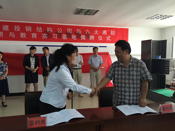 6月24日上午,由甘肃建投人力资源处组织,甘肃建投钢结构公司与包括我校在内的省内六所高校在兰州新区甘肃建投钢结构公司所在地签订建立科研与教学实习基地协议,并进行科研与教学实习基地揭牌仪式。甘肃建投钢结构公司董事长马建峡、甘肃建投总公司人力资源处处长王雅秋、甘肃建投钢结构公司总经理吴晓燕等出席仪式。我校土木工程学院院长马守才教授参加了签约仪式。