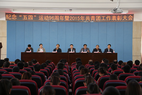 4月28日下午,八楼会议中心团徽闪闪、团歌嘹亮,我校青年学子欢聚一堂,学校纪念五四运动96周年暨2015年共青团工作表彰大会在这里隆重举行。党委书记高永新,副书记何春海,副校长冯彪、俞子泓,纪委书记廉志端,校长助理马铁信,总会计师王多兴出席大会。俞子泓主持大会。各学院党总支书记、组织部、宣传部、学生处、招就处、公寓中心负责人和获奖师生代表参加大会。