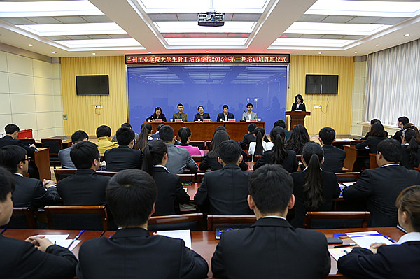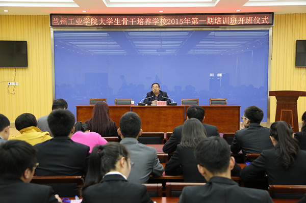 开班仪式上,温小强宣读了《关于举办兰州工业学院大学生骨干培养学校2015年培训班的通知》;学生代表、校学生会主席张娜从提高学生干部学习成绩、提高道德情操等方面发言。