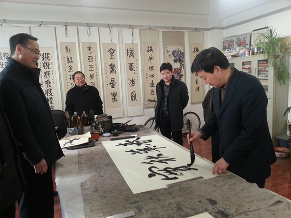 12月31日,学校离退休老同志迎新春书画展在职工之家开展。党委书记高永新、副书记何春海、副校长俞子泓、总会计师王多兴等出席开展仪式,饶有兴致地观赏了书画展,并现场挥毫助兴。(供稿、摄影/离退休支部)