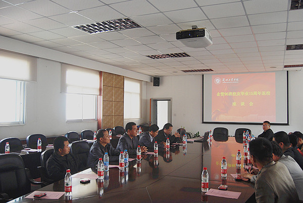 学校在第二会议室召开座谈会。党委副书记何春海出席并与两个班的校友们亲切座谈。校友工作办公室主任赵巧琴主持座谈会。管理学院院长卢生康、书记赵万双、营销01-1班、企管96班原班主任及部分任课教师参加了座谈会。