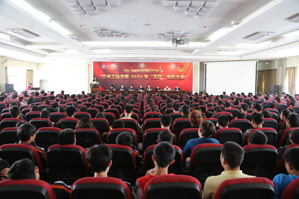 4月29日下午,八楼会议中心团旗飘扬、歌声阵阵,学校在这里隆重举行“五四”运动95周年纪念大会暨2014年“五四”表彰大会。党委书记高永新,副校长冯彪、俞子泓、王华栋、魏军,纪委书记廉志端,校长助理马铁信,总会计师王多兴出席大会,俞子泓主持大会。各学院党总支书记,学生处、招就处、保卫处、公寓中心、团委负责人及获奖学生代表近500人参加大会。