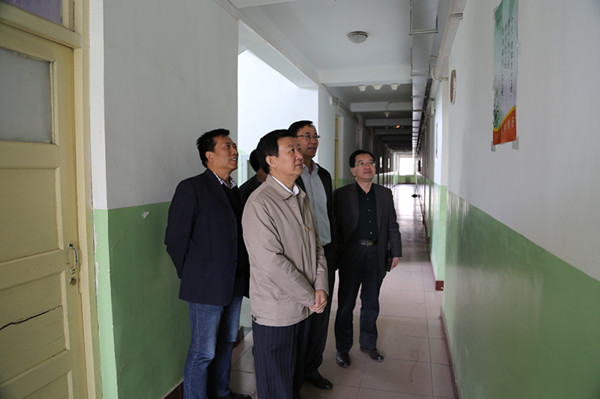 高永新一行先后察看了第一教学楼墙体永久性户外宣传设施情况,北校区大门口宣传栏更换情况,随后又深入到学生公寓、餐饮中心察看了社会主义核心价值观宣传布置和校园文化设施情况。