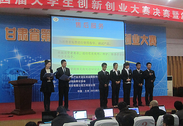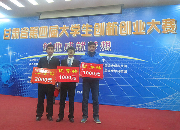 12月28日,甘肃省第四届大学生创新创业大赛结果揭晓。本次大赛共有27所高校、306个项目参赛,经过复赛、决赛,我校机电工程学院王亚祥、曾菁、张培祯、彭世博四位同学与金融会计学院李开放同学共同制作、马青丽老师指导的项目“助力摘花椒器的应用及推广”获三等奖;机电工程学院周明、韩步鹏、韩峰三位同学与管理学院席雯雯、胥娟娟两位同学共同制作、张红岩老师指导的项目“爬楼越障一体车的产业化应用”获优秀奖;管理学院马杰、石玉凤、吴双双、刘启涛、王伟伟等五位同学共同制作、邹媛春老师指导的项目“兰州奇乐骑行车租赁有限公司”获优秀奖。(供稿、摄影/团委)
