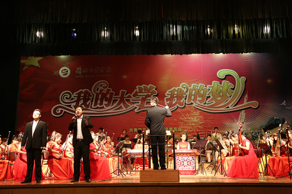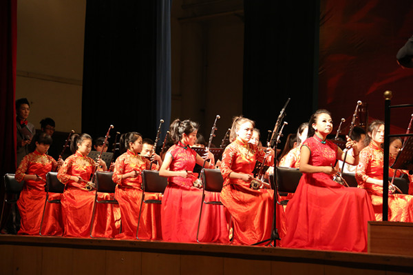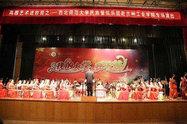 11月28日晚,主校区大礼堂内琴音悠扬,西北师范大学民族管弦乐团来我校的专场演出在《庆典序曲》中拉开帷幕。两千多名师生一起欣赏了这场民乐盛宴。
