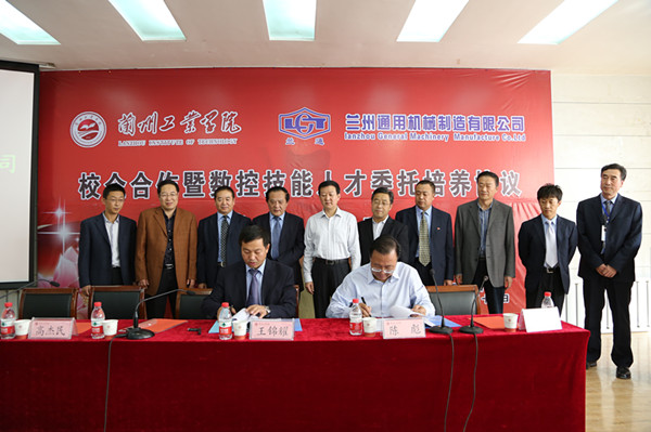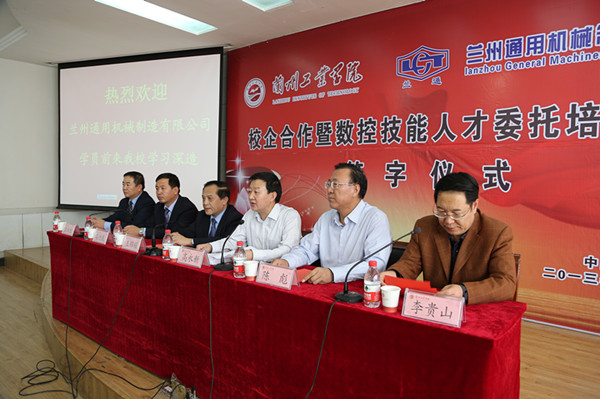 10月11日下午, “兰州工业学院-兰州通用机械制造有限公司校企合作暨数控技能人才委托培养协议”签字仪式在我校隆重举行,兰州通用机械制造有限公司党委副书记王锦耀、副总经理高杰民等,校党委书记高永新、校长陈彪、校长助理李贵山出席签字仪式。材料工程学院、工程训练中心负责人以及材料工程学院全体教师参加签字仪式。李贵山主持签字仪式。