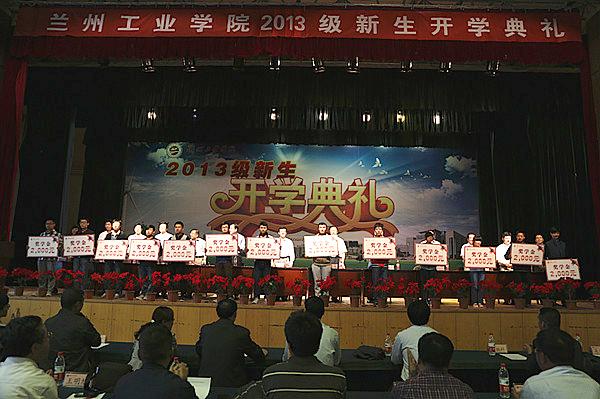 开学典礼在雄壮的国歌奏唱声中拉开了帷幕。校学生会主席、材料工程学院张乐同学,电气工程学院张彬同学分别代表在校生和新生发言;甘肃省教学名师、甘肃省青年教师成才奖获得者朱玉红教授代表全校教师向新生致词。