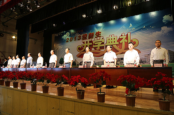 9月4日上午,学校在大礼堂隆重举行2013级新生开学典礼。党委书记高永新,校长陈彪,党委副书记何春海,副校长冯彪、俞子泓、王华栋、魏军,纪委书记廉志端,校长助理、党委组织部部长马铁信,总会计师、财务处处长王多兴出席开学典礼。副校长俞子泓主持典礼。各学院党政和学校相关职能部门负责人,2013级全体新生及其辅导员参加了开学典礼。