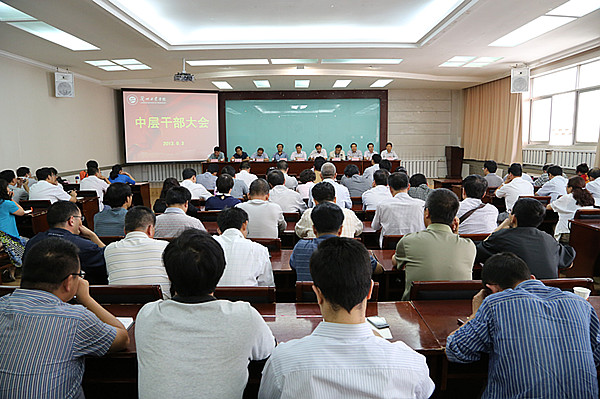 9月3日下午,学校在第一学术报告厅召开新学期中层干部大会。学校领导高永新、陈彪、何春海、冯彪、俞子泓、王华栋、魏军、廉志端,校长助理马铁信,总会计师王多兴出席会议,全体中层干部、正高级职称教师100余人参加会议。党委副书记何春海主持会议。